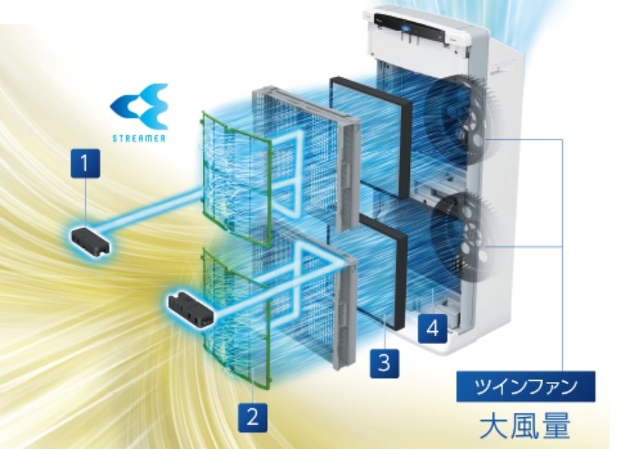 ✔ Hệ thống lọc 4 lớp: Streamer, lưới lọc thô, HEPA tĩnh điện, xúc tác khử mùi.