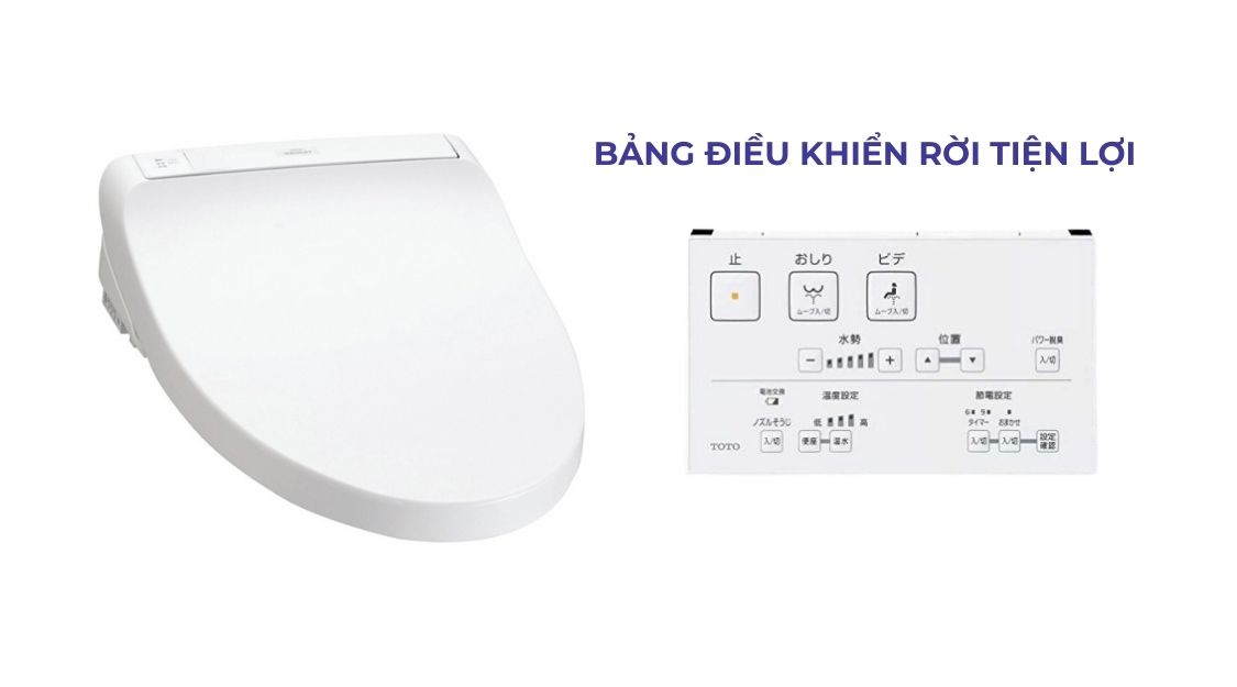 Nắp bệt điện tử TOTO TCF8CS67 được trang bị bảng điều khiển rời gắn tường, có thể lắp đặt linh hoạt trên tường hoặc vách kính. Tất cả tính năng thông minh như điều chỉnh nhiệt độ nước, áp lực phun, hay làm ấm chỗ ngồi đều được tích hợp sẵn giúp bạn dễ thao tác và lựa chọn chế độ phù hợp theo nhu cầu.