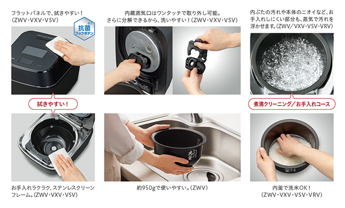 Thiết kế của RC-10ZWV được người dùng Nhật đánh giá rất cao vì dễ vệ sinh, điều này liên quan trực tiếp đến kết cấu:
